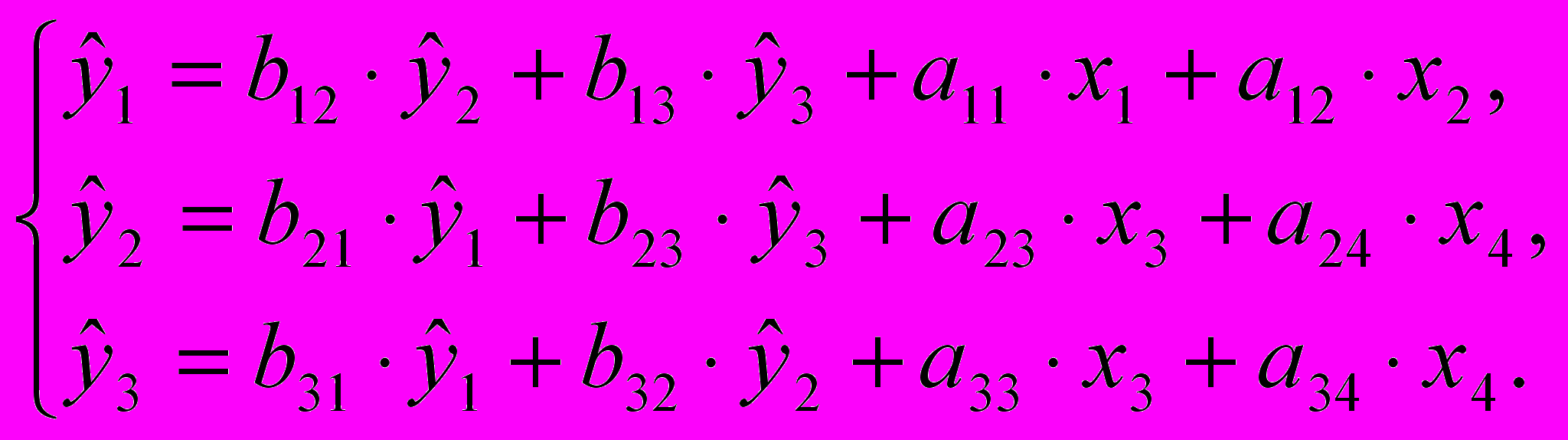 Используя матрицу коэффициентов модели в исходных данных, записываем систему одновременных уравнений регрессии в структурной форме: