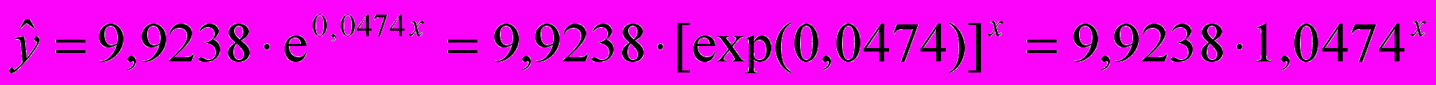 — функция экспоненты (в EXCEL встроенная функция «EXP»).Параметр b1=1,0474 является средним коэффициентом роста. Его значение показывает, что при увеличении объема капиталовложений X на 1 млн. руб. объем выпускаемой продукции Y возрастает в среднем в 1,0474 раза, то есть на 4,7 %.