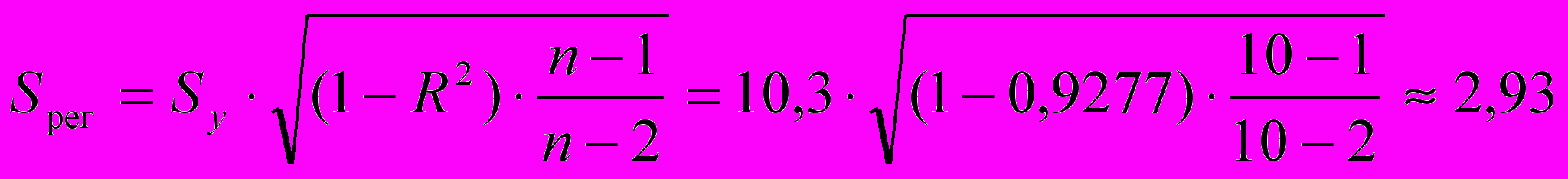 Стандартная ошибка линейной парной регрессии Sрег определена там же: