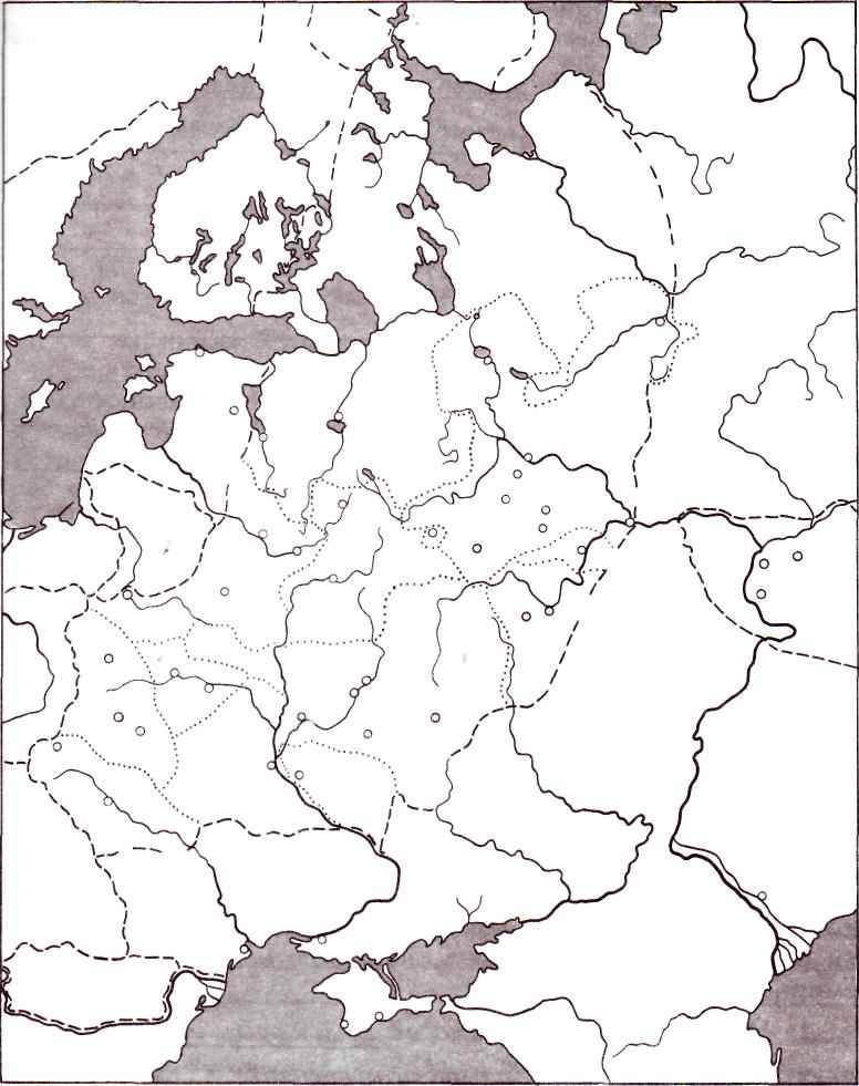 VII. Нанесите на контурную карту общую границу Руси, границы и названия основных княжеств, столицы княжеств.