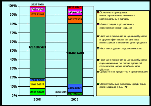 В структуре активов ЗАО «ВТБ 24» в 2009г. сократился объем раздела: “Средства в кредитных организациях” более, чем в 10 раз (с 210 млн. руб. до 20 млн. руб.), при росте ссудной задолженности на 5,2 % (с 1 787 млн. руб. до 1 884 млн. руб.), вложений в ценные бумаги в 3 раза с 75 млн. руб. до 245 млн. руб. и основных средств в три раза (с 28 млн. руб. до 85 млн. руб.). (Рисунок 3).