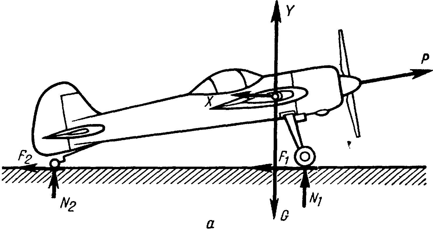 Уравнения движения центра тяжести самолета при разбеге имеют вид: