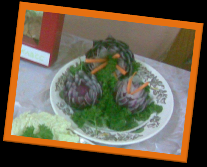 Свое мастерство решили показать и работники нашей столовой. Студентки-практикантки из ПУ-33 организовали выставку своих кулинарных изделий в столовой. Они приготовили разнообразные блюда из овощей, которые были исполнены очень оригинально. Здесь были и сделанные из огурцов кактусы, и снеговики, декорированные овощами, и вырезанные из перца лилии, и многое другое. ,.,,