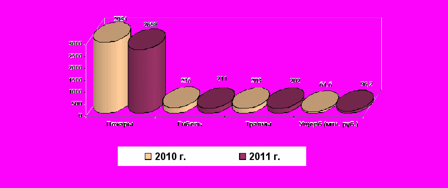 - прямой ущерб от пожаров - 96235 тыс. руб. (в 2010 - 64596, +49,0%).