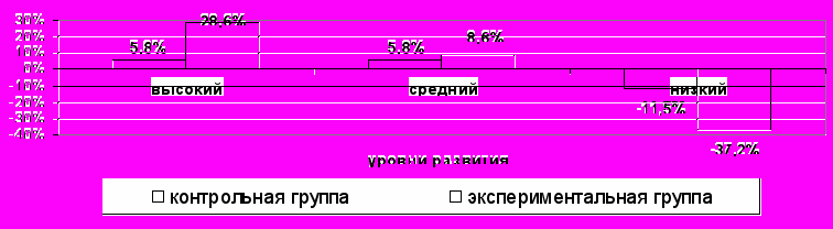 Анализ результатов проведенного формирующего эксперимента позволил выявить, что более значительный прирост в развитии педагогического творчества произошел в экспериментальной группе, по сравнению с контрольной.