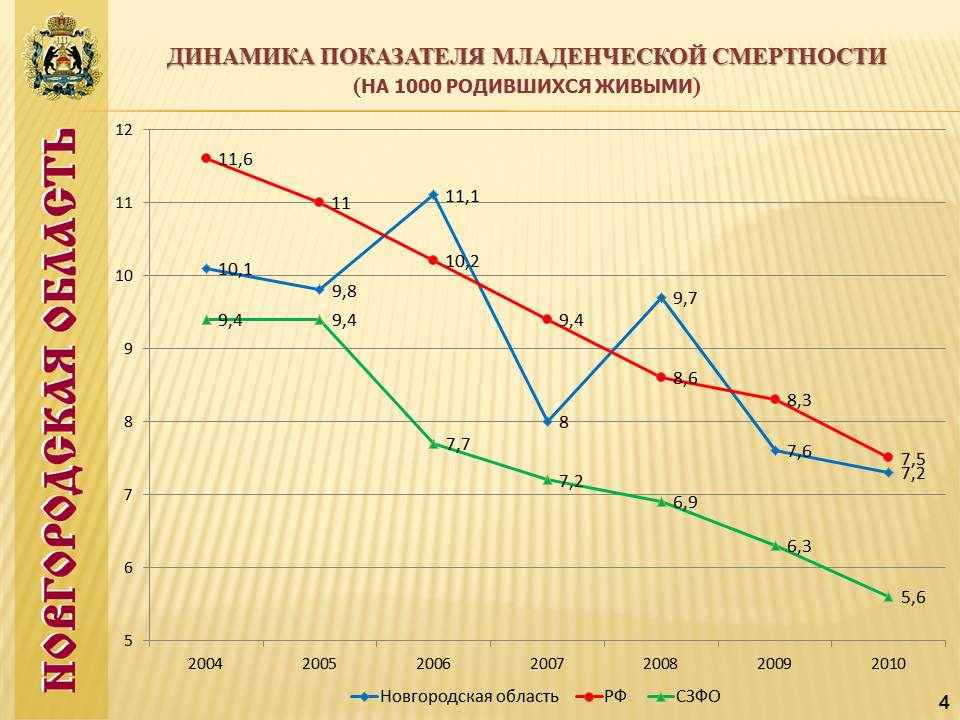 Слайд №4 Динамика младенческой смертности