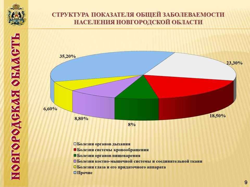 Слайд№9 Структура показателя общей заболеваемости населения Новгородской области