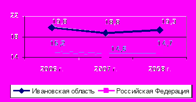 в Ивановской области по сравнению с Российской Федерацией, (на 1000 населения)