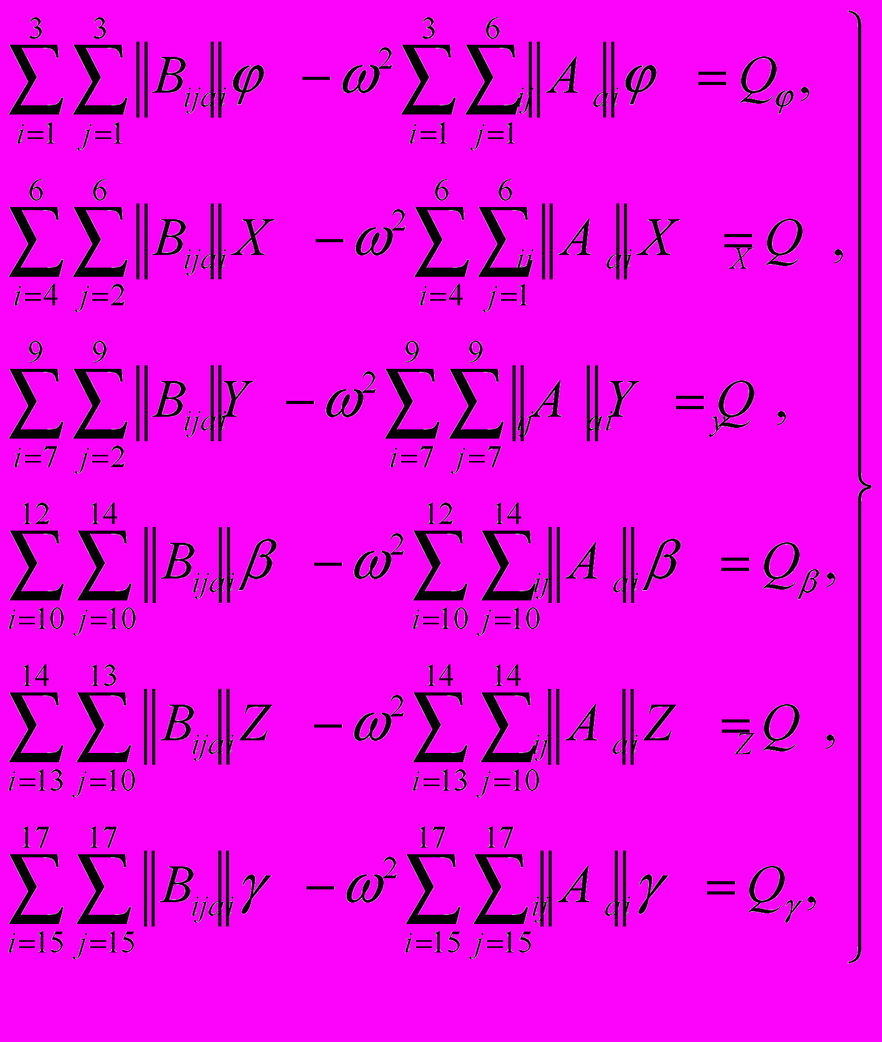 Решение системы дифференциальных уравнений (4), описывающих продольные, продольно-угловые и поперечно-угловые колебания масс тракторного поезда, ищем в форме: