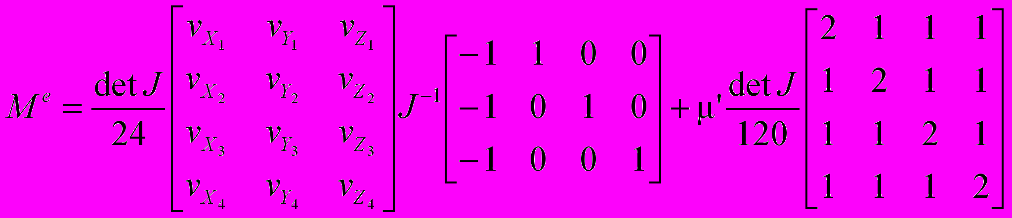 – матрица преобразования конечного элемента е; x1,y1,z1,x2,y2,z2,x3,y3,z3,x4,y4,z4 – координаты узлов конечного элемента е;