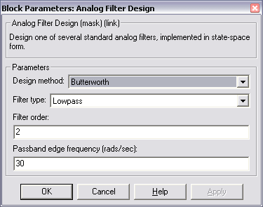 - Каким образом задается фильтр Баттерворта в блоке Analog Filter Design.