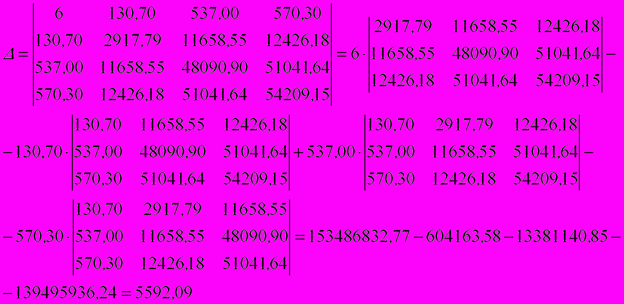 Составим таблицу расчетов (таблица 1) и получаем следующую систему уравнений:
