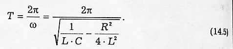 Затухание нарушает периодичность колебаний и строгое применение понятия периода и частоты к ним не применимо. Однако при малом затухании условно пользуются понятием периода как промежутка времени между последующими максимумами (или минимумами) колеблющейся величины. С учетом этой оговорки период свободных затухающих колебаний в контуре равен