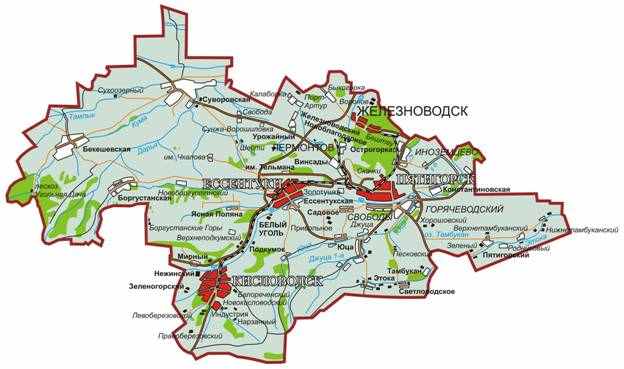 Районный центр Предгорного района — станица Ессентукская, расположенная в 210 км от г. Ставрополя.