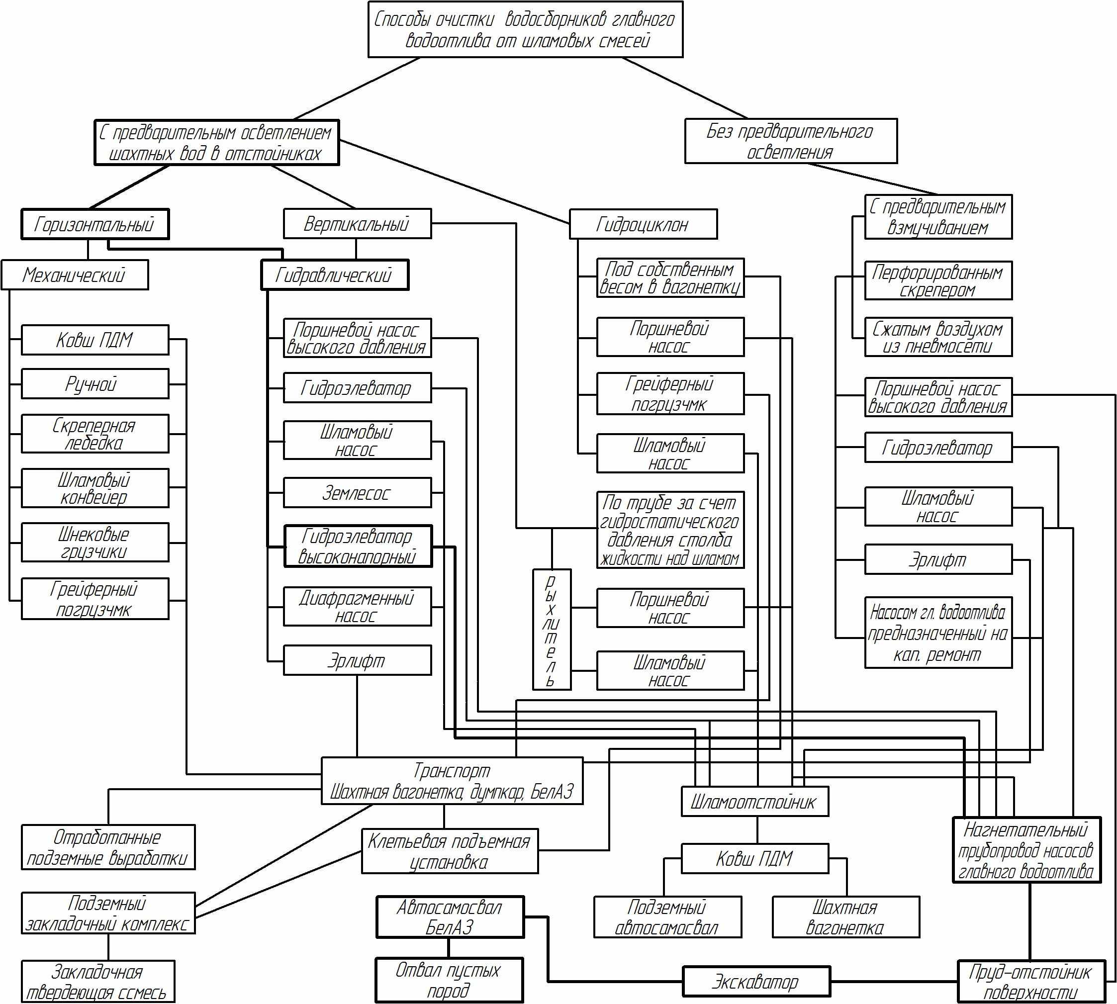 На УПР и ГПР очистку водосборников и шламоотстойников производят погрузочно-доставочными машинами (ПДМ) с последующей транспортировкой шлама МоАЗами или локомотивом с шахтными вагонетками. Отвлечение этих машин на очистку водосборников приводит к снижению производительности рудника и, соответственно, к увеличению парка технологических машин.
