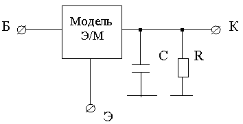 , где β – коэффициент усиления транзистора в схеме с ОЭ.Для дискретного биполярного транзистора модель Эберса-Молла добавляется значениями паразитных параметров: индуктивностей и емкостей выводов.