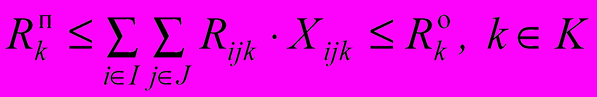 Rkо, Rkп – соответственно оптимистическая и пессимистическая прогнозные оценки наличия количества ресурса k-го вида для выполнения всех видов работ судоходной компании, единица ресурсов;