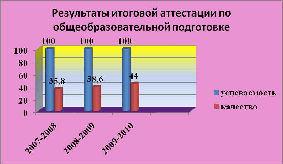 За последние три года качество знаний по результатам итоговой аттестации по общеобразовательной подготовке увеличилось на 8%.