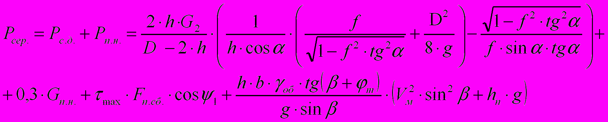, (12)где D– диаметры диска, м; h – глубина обработки почвы, м; G1–вес диска, Н; g – ускорение свободного падения, м/с2; ψ –угол поворота радиус – вектора при построении спирали, в нашем случае этот угол изменяется от 0 до 2π/5, рад; ρ - расстояние от центра вращения диска до любой точки его сферической поверхности, м; α – угол атаки, рад.