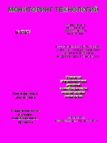 3) после реализации нововведения (сопоставление целей и полученных результатов нововведения).