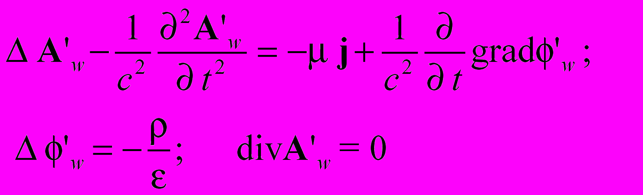 (1.8)Кажется, что мы действительно имеем дело с кулоновской калибровкой. Однако выражение для скалярного потенциала в (1.8) и соответствующее выражение в (1.1), находятся в противоречии. Потенциал ’w в выражении (1.8) обязан быть запаздывающим, а в уравнении (1.1) ’ins - мгновенно действующий.
