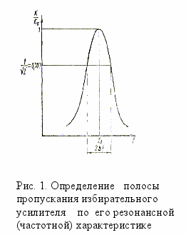 Полосой пропускания избирательного усилителя 2∆f называют область частот, в пределах которой ослабление спектра усиливаемых колебаний не превышает заданной величины. Обычно считается допустимым ослабление уровня сигнала на 3 дБ (в