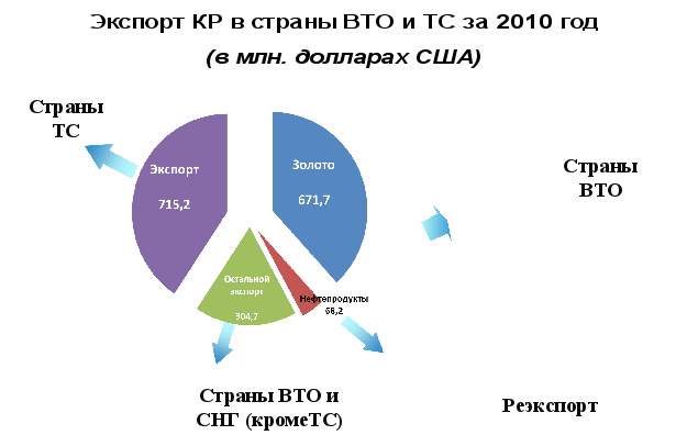 В результате укрепления таможенных границ по отношению к Кыргызской Республике со стороны Таможенного союза снизилась торговая активность челноков (за 2010 год челночная торговля сократилась на 7,1% по сравнению с 2009 годом; по информации рынка Дордой, оптовая торговля снизилась на 60 %). В 2010 году экспорт Кыргызстана составил 1,7 млрд.долл. США, при этом экспорт в страны СНГ составил 788 млн. долларов США, в том числе в страны Таможенного союза - 715 млн. долларов США или 90%.