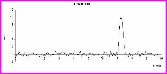 Рис. 3 Хроматограммы: а) нимодипина (25 мкг/мл); б) магнитной жидкости FLW 001.40 (200 мг/мл Fe); в) смеси Нимодипина (25 мкг/мл)с магнитной жидкостью FLW 001.40 (200 мг/мл Fe)