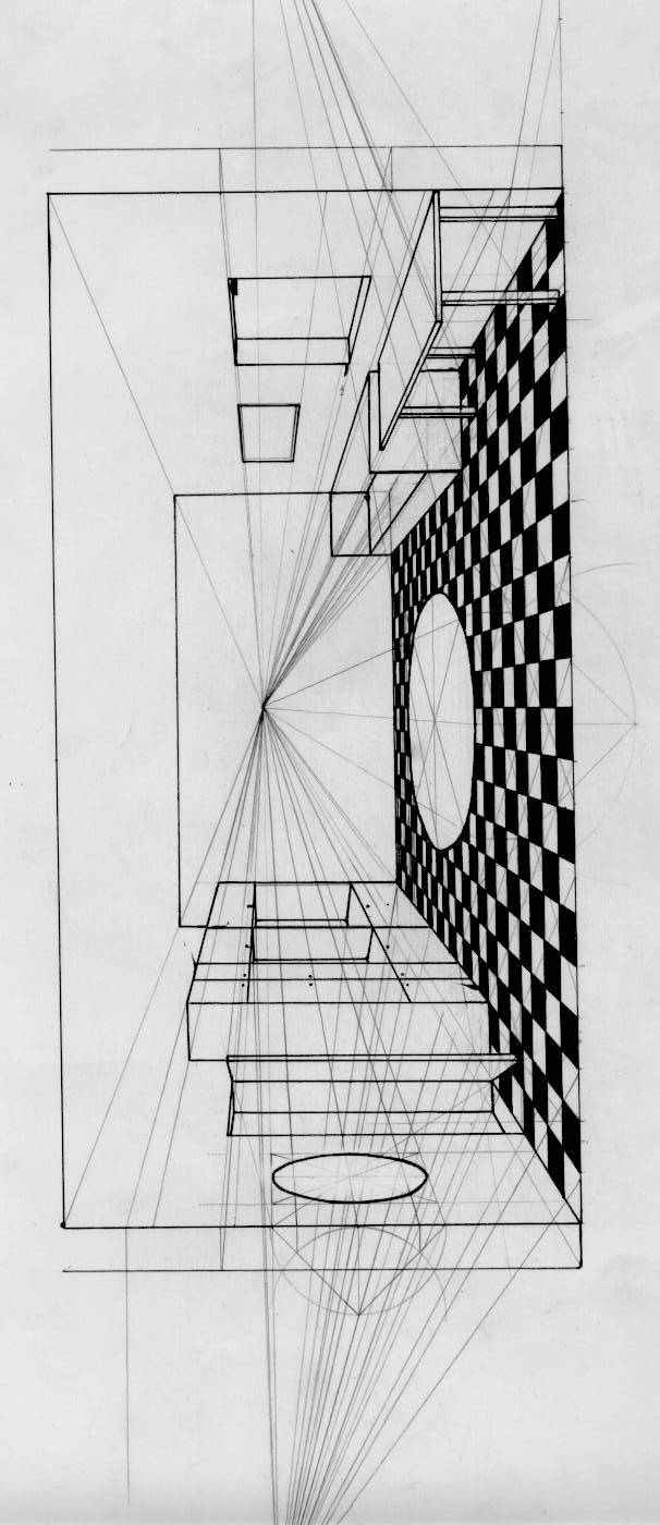 Рис.3ПРИМЕРЫ ПОСТРОЕНИЯ ПЕРСПЕКТИВЫ ИНТЕРЬЕРА: