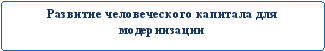 - «Развитие человеческого капитала модернизации» - охватывают образование, подготовку кадров для того, чтобы эффективно осуществлять модернизацию. Эта задача носит рекомендательный характер: сюда предлагается включить проекты по внедрению специальных программ в систему образования и дополнительного обучения. Оправдан будет проект по управлению КИП (выбор-создание управляющей компании, что описывается в Главе 4).