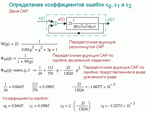 На рис.1.12 представлено вычисление коэффициентов ошибок для САР, показанной на рис. 1.7.