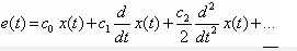 При пробных степенных воздействиях вида x(t) =Aν·tν·10(t) качество САР удобно характеризовать коэффициентами ошибок. Коэффициенты ошибок связывают ошибку слежения e(t) (см. рис. 1.4) с отслеживаемой величиной (заданием) и ее производными: