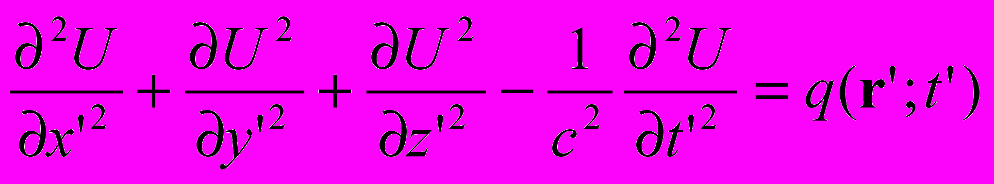 Сначала мы рассмотрим стандартный (традиционный) подход. Пусть имеется инерциальная система отсчета K’ , в которой покоится источник обильностью q(r’;t’), который создает потенциал U. Пусть этот потенциал описывается волновым уравнением