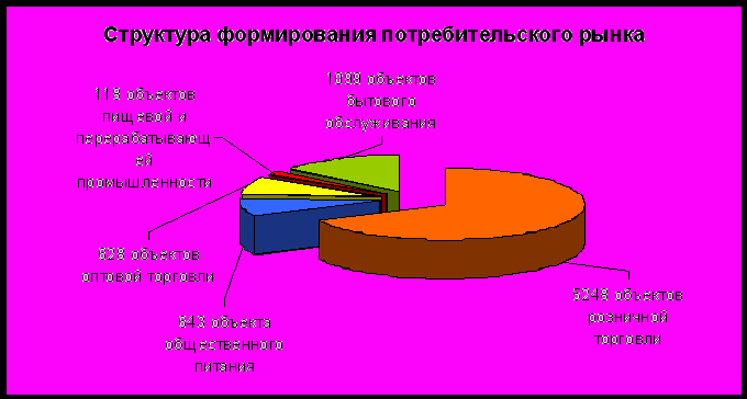 Большой вклад в формирование потребительского рынка вносят местные производители. На территории города действует 74 цеха малой мощности (мясная, рыбная продукция, макаронные, кондитерские изделия, повидло, салаты, квас, пиво, б/алкольные напитки, минеральная вода) и 44 мини-пекарни, которые предлагают для потребителей широкий ассортимент продуктов питания.