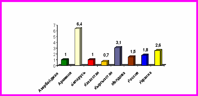 Диаграмма 2. Среднемесячная заработная плата в государствах СНГ