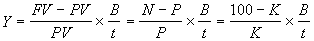 , (3.35) где t – число дней до погашения; Р – цена покупки; N – номинал; К – курсовая стоимость; В – используемая временная база.