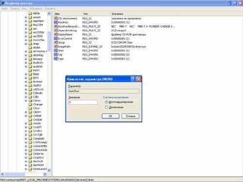Купили вы диск, доверху набитый полезным программным обеспечением. Принесли домой, вставили в дисковод, автоматически запустился диск, а там - вирус. Чтобы этого не произошло, вам нужно пройти по следующему адресу в реестре - HKEY_LOCAL_MACHINESYSTEMControlSet001ServicesCdrom, и параметру AutoRun присвоить значение 0. Для редактирования реестра вам нужно запустить программу RegEdit, которая запускается так: Пуск - Выполнить - regedit.