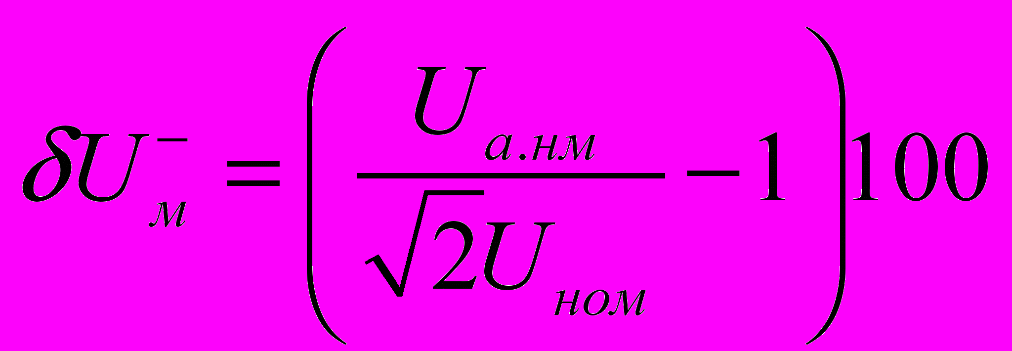 Значения установившегося отклонения напряжения на выходных выводах для подключения аккумуляторной батареи (Uy)B процентах от установленного значения вычисляют по формулам (18,19):