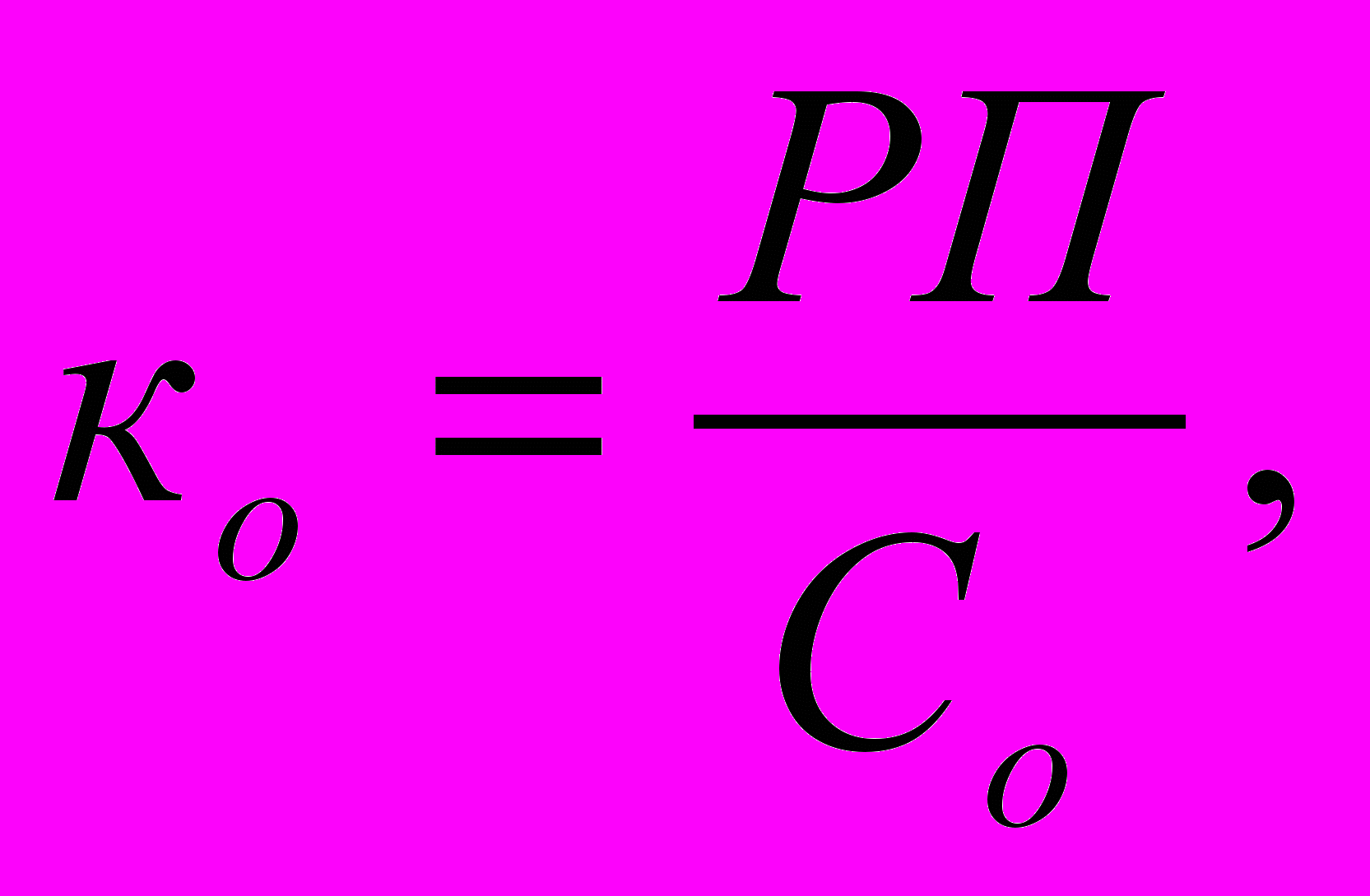 Коэффициент оборачиваемости (Ко) характеризует количество оборотов, которое совершают оборотные средства за определенный период, и определяется отношением объема реализованной продукции в стоимостном выражении (РП) к среднему остатку оборотных средств (С0):