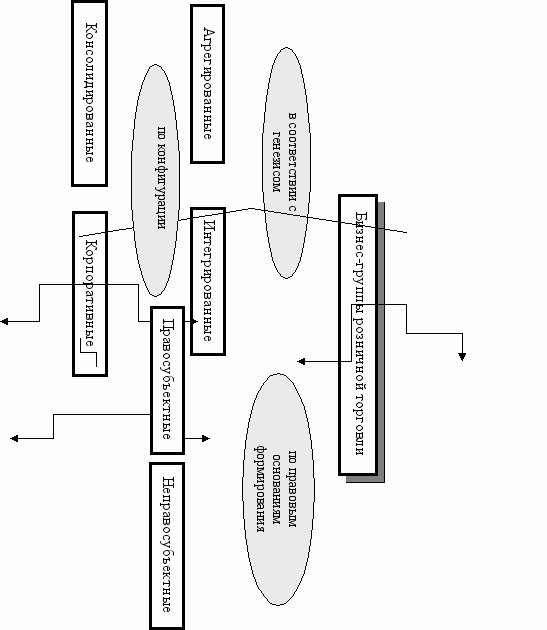 Современные бизнес-группы, развивающие мультиформатные сети розничных торговых предприятий, как единые интегрированные или агрегированные коммерческие структуры являются неправосубъектными коммерческими объединениями, поэтому в качестве комплексных управляемых систем не могут быть объектом государственного управления и регулирования, что обуславливает необходимость законодательного определения их правового статуса.