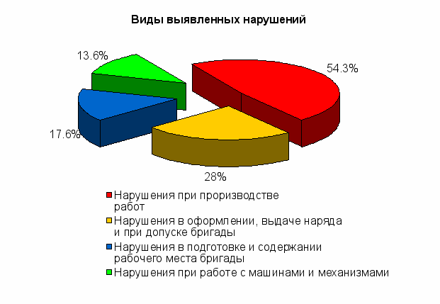 При проверках было выявлено 1208 нарушений норм и правил безопасности. Из них 403 нарушения (33%) допущено работниками филиалов ОАО «Кузбассэнерго», а 805 нарушений – работниками подрядных организаций (67%). Меньше всего выявляется нарушений, допущенных «своими» работниками, на ТУ ГРЭС – 8,6% от общего количества нарушений. В Барнаульском филиале этот показатель составил 46%, в УТС – 39%, в остальных филиалах в среднем 32%.