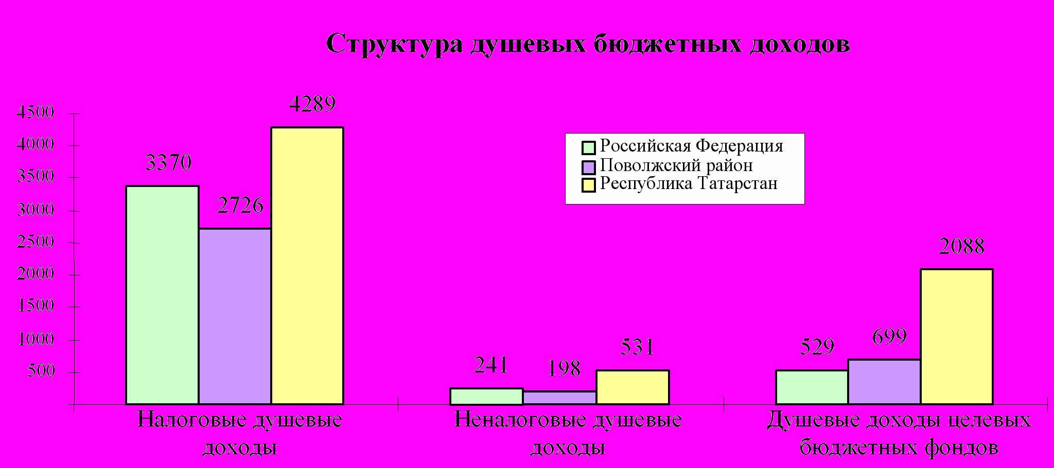 В результате Республика Татарстан по итогам 1999 года занимает 15-е место в стране по объему собственных душевых бюджетных доходов и 13-е место – по суммарным душевым доходам (с учетом финансовой поддержки).