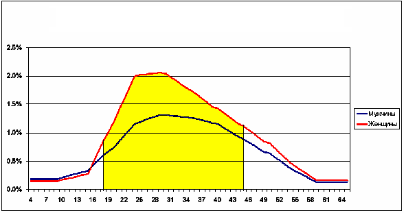 7) Социально-демографическая структура аудитории канала. Результаты исследования социально – демографических структур аудиторий каналов, проведенного в “Видео Интернешнл”, показали, что на аудиторию в возрасте от 18 до 45 лет приходится 80% бюджетов рекламодателей, размещающих рекламу на телевидении (см. рисунок 4), что подтверждает тот факт, что чем больше экономически активной аудитории привлекает канал, тем больше бюджетов он привлекает.