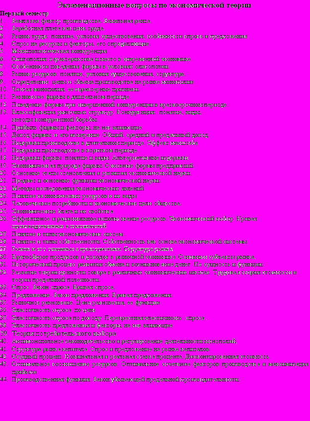 | | Микроэкономика 1 семестр | Макроэкономика 2 семестр | ||