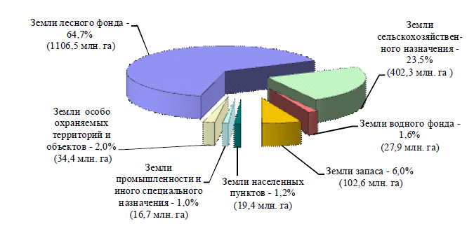 Современная структура земельных ресурсов России представлена на рис. 4.