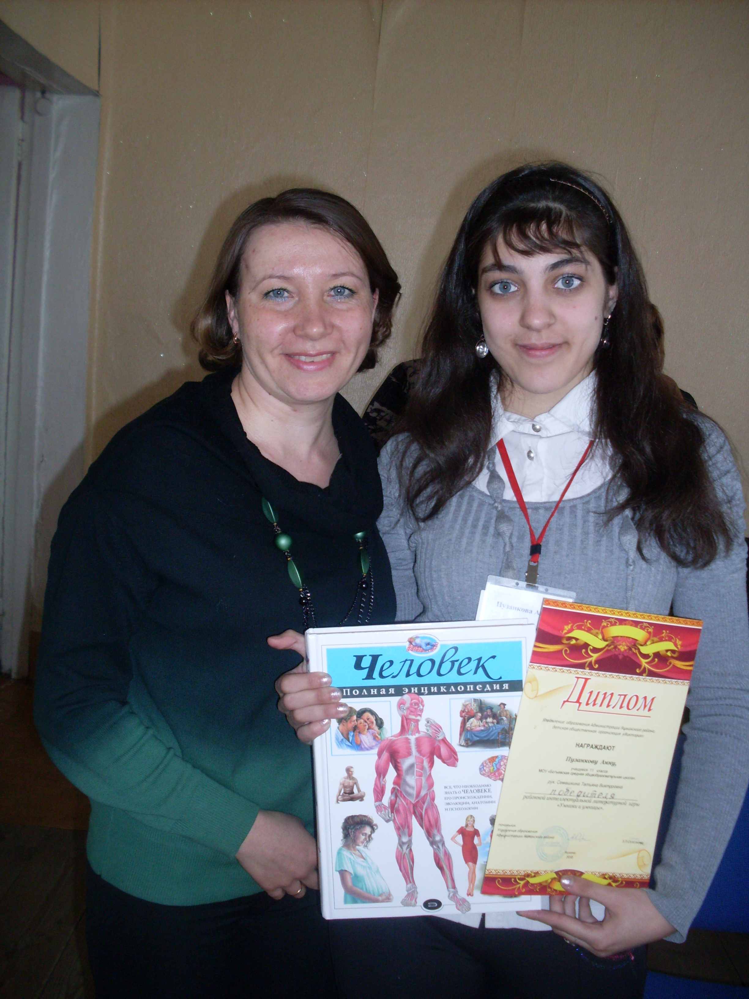 Победительница игры Пузанкова Анна с учителем русского языка и литературы Семашкиной Татьяной Викторовной