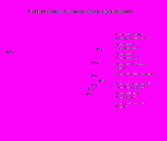 В рейтинге страховых агентств и представительств страховых компаний ведущие позиции по общему сбору страховых премий занимает: ООО «Росгосстрах-Юг» - 46%, представительство ВСК - страховой дом – 29%, филиал ОСАО «Россия» - 7%, ООО «Цюрих.Ритейл» - 6%, СЗАО «Стандарт-Резерв» - 2%, страховое общество «ЖАСО» - 5%, дополнительный офис «Согласие» - 5%.
