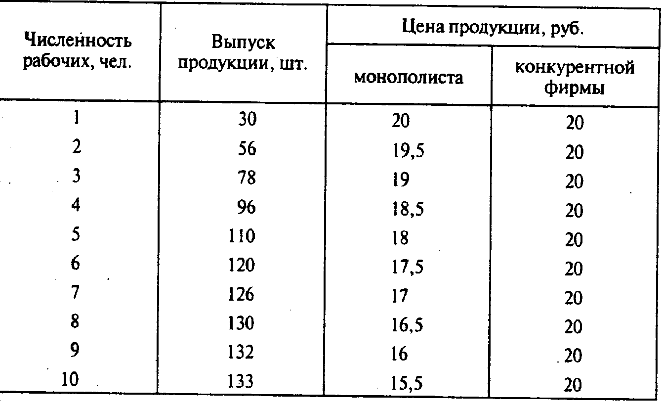 Сколько рабочих она наняла бы в условиях совершенной конкуренции на рынке продукции? Необходимые для ответа на вопрос данные указаны ниже: