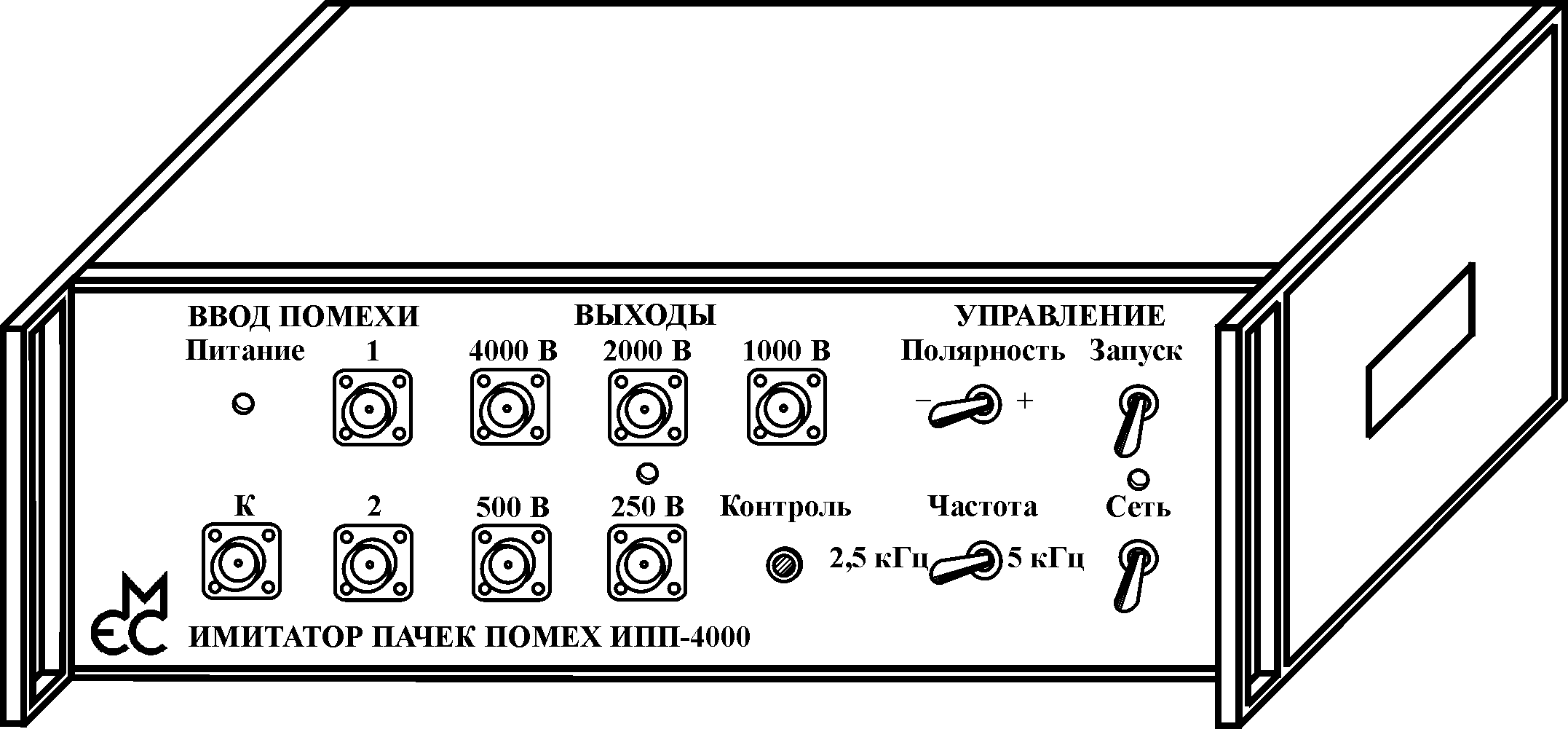 | ИПП-4000 - имитатор пачек помех для испытаний по ГОСТ Р 51317.4.4-99 Амплитуда импульсов 0,25; 0,5; 1; 2; 4 кВ Фронт / длительность 5 / 50 нс Частота следования 2,5; 5 кГц Длительность / период пачек 15 / 300 мс Выпускаются модификации ИПП-2000 с амплитудой генерируемых импульсов до 2 кВ |