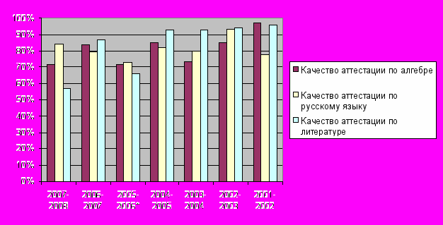 | Качество аттестации по алгебре | 72% | 83,5% | 72,00% | 85,00% | 73,60% | 85,00% | 97,00% |